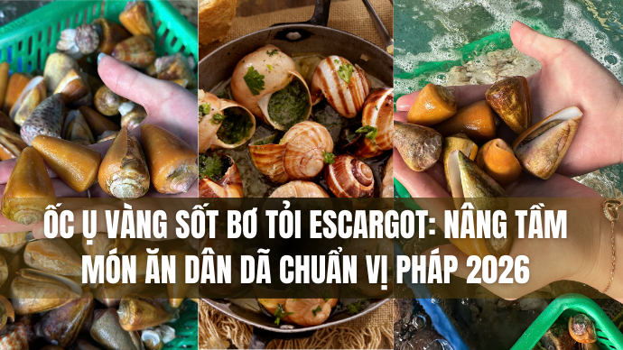 Từ những con ốc ụ vàng mộc mạc nơi đồng quê, qua bàn tay khéo léo và một chút tinh tế trong cách phối trộn gia vị kiểu Pháp, chúng ta đã có ngay món ốc ụ vàng sốt bơ tỏi Escargot trứ danh. Món ăn này không chỉ là sự giao thoa văn hóa ẩm thực thú vị mà còn là minh chứng cho thấy nguyên liệu Việt Nam hoàn toàn có thể vươn tầm đẳng cấp quốc tế.
