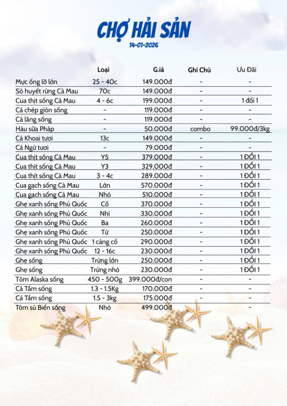 Giá Hải Sản Hôm Nay 14/1: Biến Động Thị Trường Và Bảng Giá Siêu Ưu Đãi Tại Hải Sản Lộc