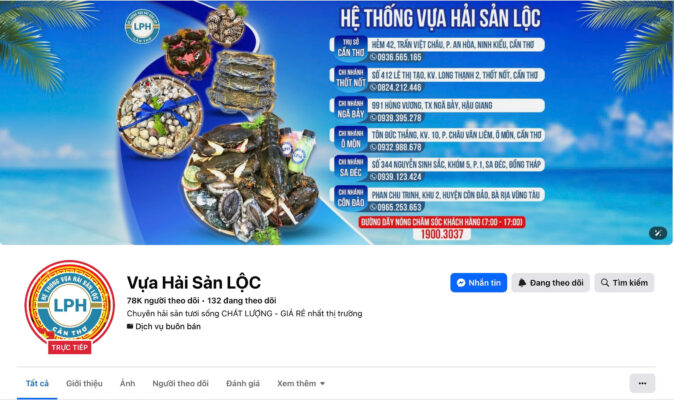 • Ưu điểm: Bạn có thể xem được hình ảnh/video thực tế của hải sản ngay tại thời điểm hiện tại. Các chương trình livestream xả hàng, đấu giá hải sản của Hải Sản Lộc cũng thường xuyên diễn ra trên Fanpage, mang lại cơ hội săn deal giá sốc không thể bỏ lỡ.